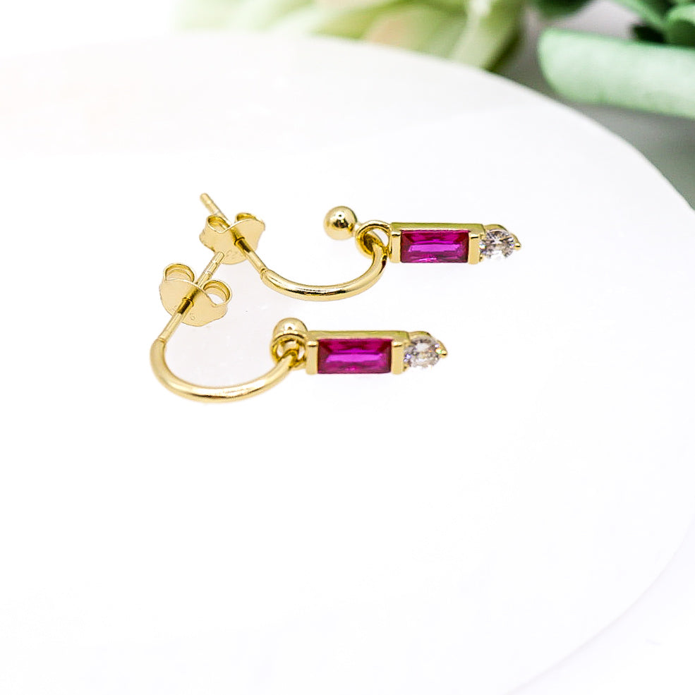 Gold Plated Hoop Earrings with CZ Charm | .925 Sterling Silver
