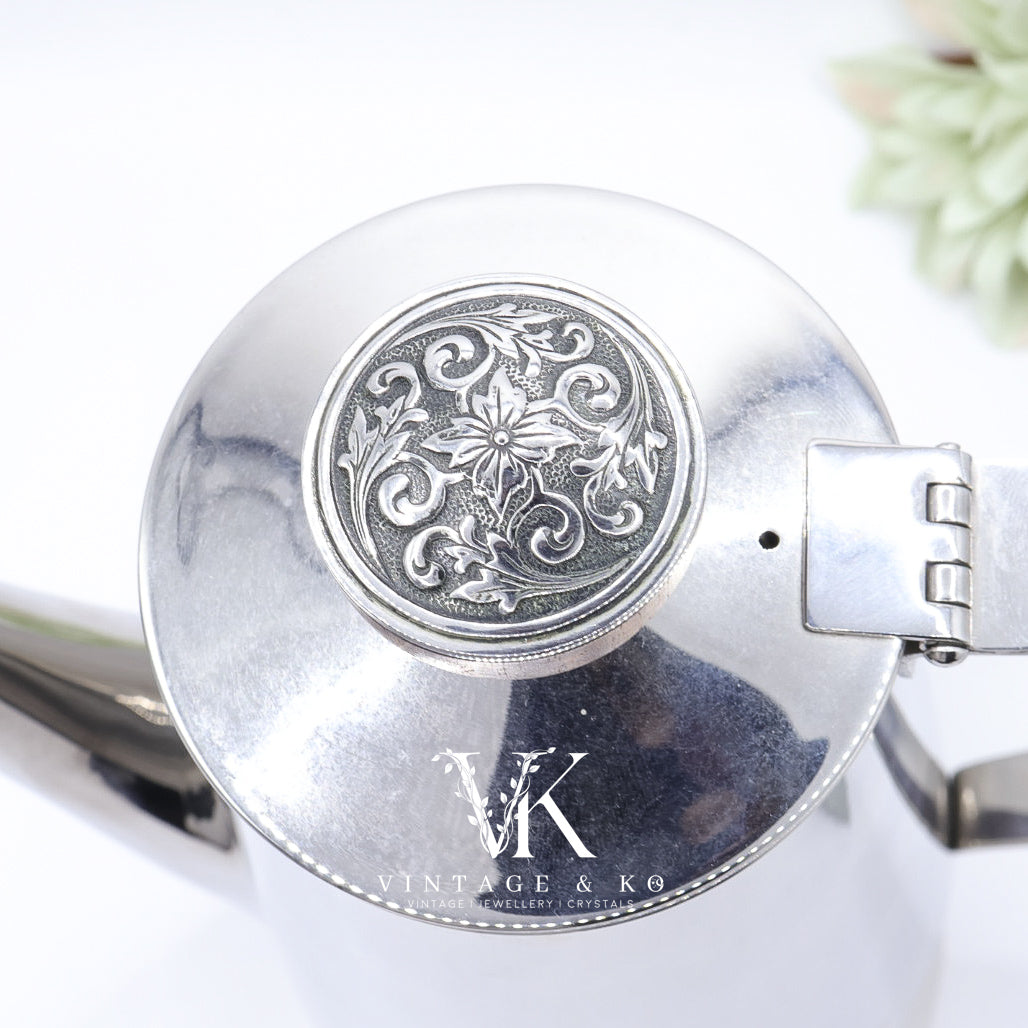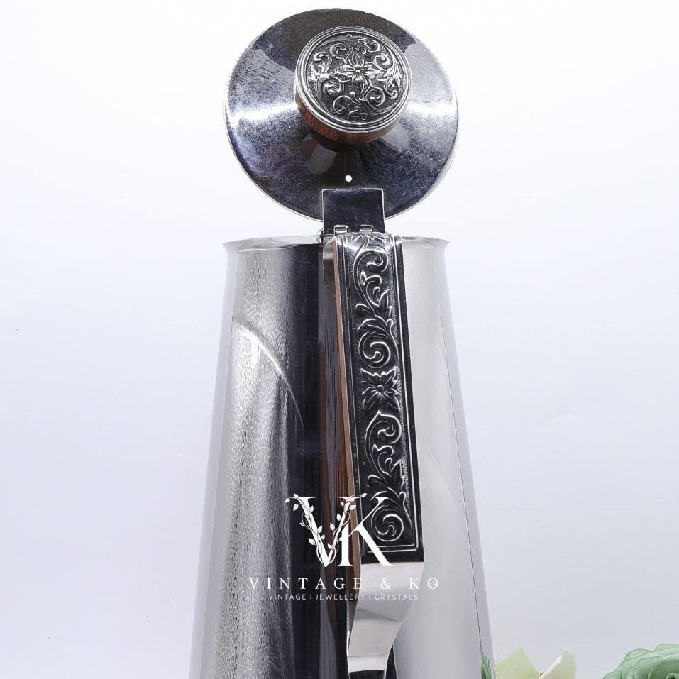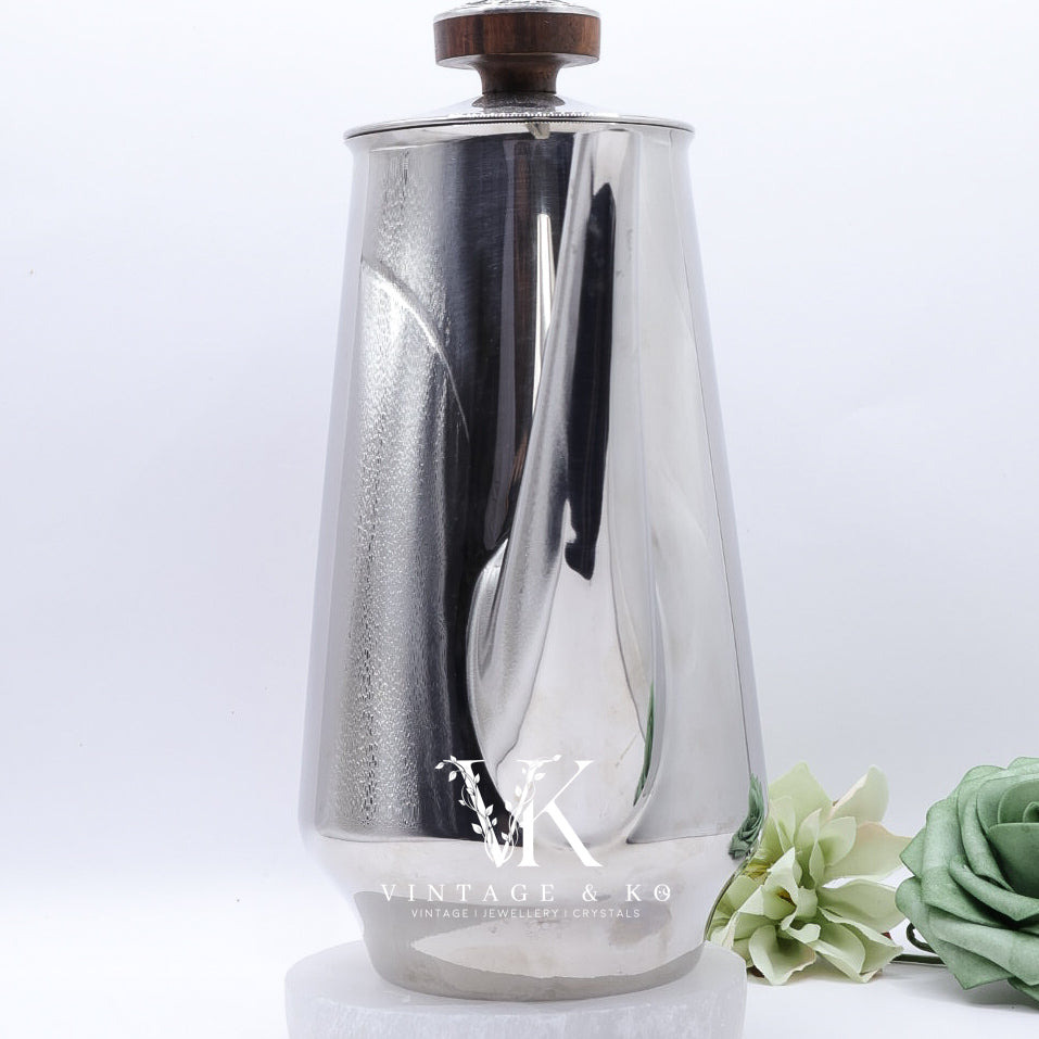 18/10 Stamped Stainless Steel Coffee Pot, Vintage Lucky Wood Florence