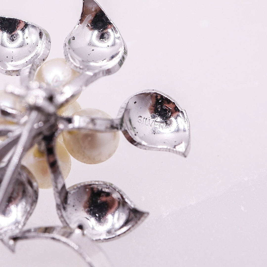 Vintage Pearl Brooch with 800 Silver Pinwheel Setting